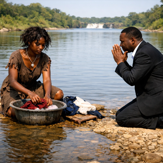 Cet après-midi-là, le soleil descendait lentement, colorant la rivière d’un bronze chaud. Amina était agenouillée sur sa pierre habituelle, frottant des uniformes d’enfants jusqu’à ce que ses poignets la brûlent. L’eau froide engourdissait ses doigts, mais son esprit restait agité de questions.