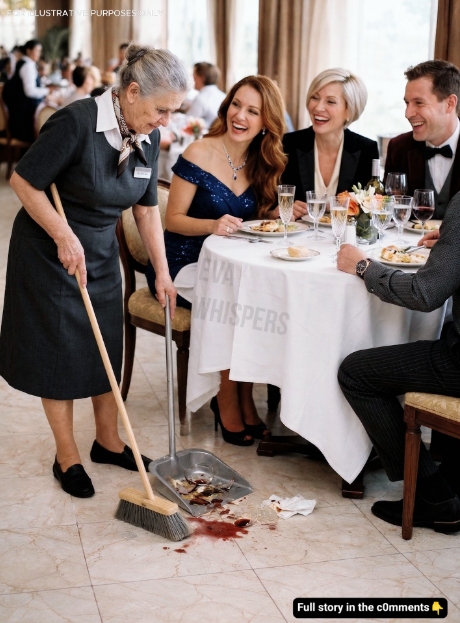 Elle accourut presque instinctivement, comme quelqu’un habitué à intervenir avant même qu’on l’appelle. Petite, frêle, les cheveux gris simplement attachés. Son uniforme était propre, mais usé. Et ses chaussures… je les remarquai immédiatement. Vieilles, irrégulières, les bords effilochés.